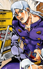 He is paired with "Kosaku Kawajiri" in the Eyes of Heaven Tournament, defeating Pucci and Akira Otoishi in the first round but eliminated by Giorno Giovanna and Guido Mista in the second.