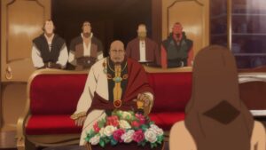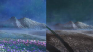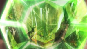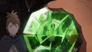 The second episode features a scene where the Shopkeeper peers through the gem to see the different identities of Mirana. As the middle shows her current self as the Princess of the Moon, the top left envisions Mirana in her innocent youth while the sides of the gem recall her previous role as the princess next-in-line to the Solar Throne.